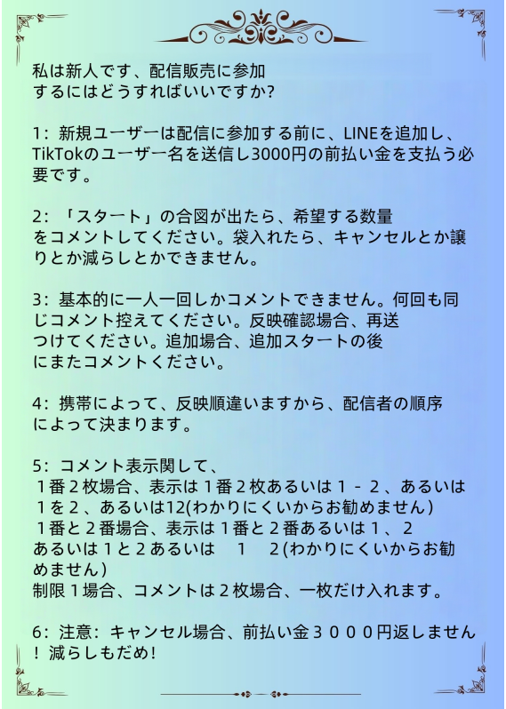 Sale only: Deposit, rules, shipping fee, new participation, LINE registration